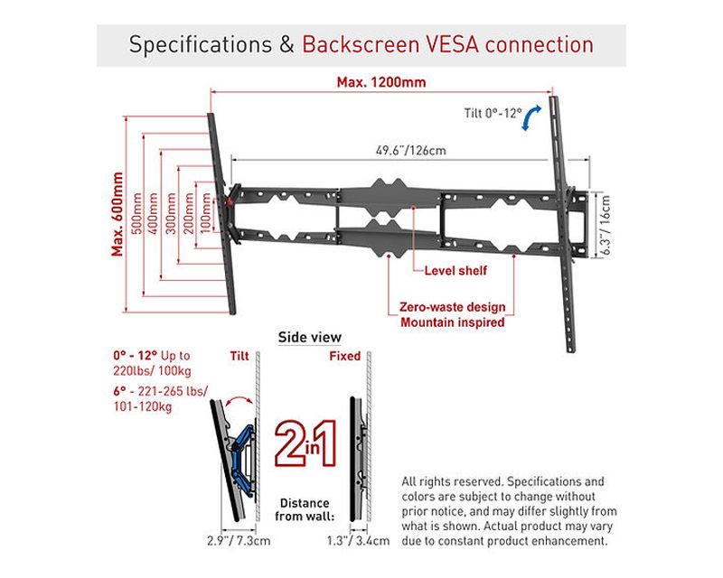 MontiranjeVESA 100mm x 100mm, VESA 200mm x 200mm, VESA 75mm x 75mm, VESA 400mm x 400mm, VESA 600mm x 400mm, VESA 400mm x 200mm, VESA 300mm x 300mm, VESA 200mm x 100mm, VESA 400mm x 300mm, VESA 100mm x 200mm, VESA 300mm x 400mm, VESA 300mm x 200mm, VESA 200mm x 300mm, VESA 600mm x 300mm, VESA 800mm x 600mm