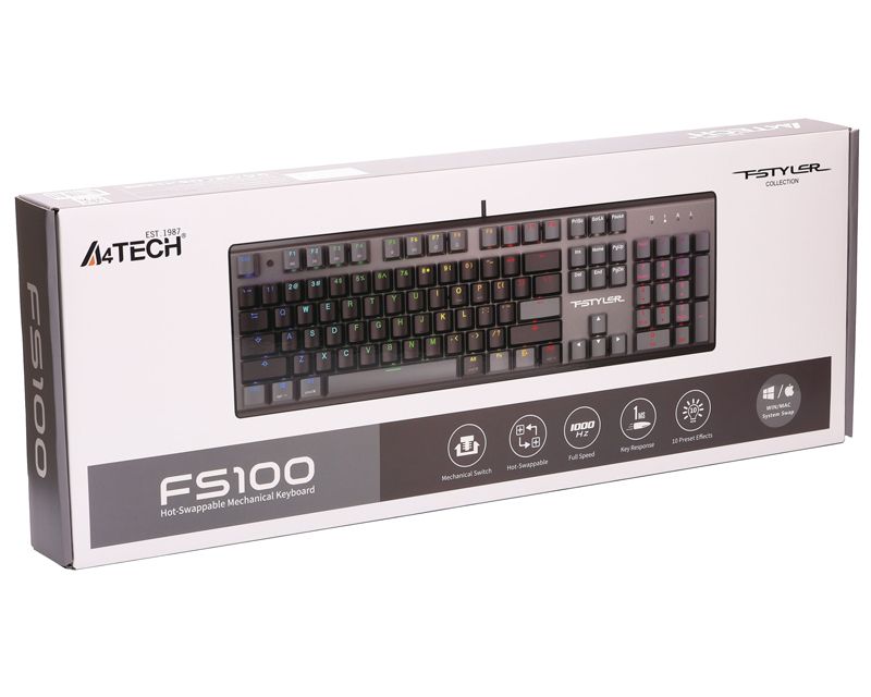A4 TECH - FS100 FSTYLER USB Neon Backlit US crna tastatura