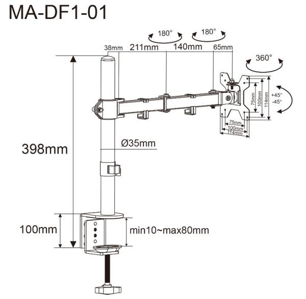 | Model | Gembird - MA-DF1-01 Gembird Podesivi stoni drzac za monitor |
